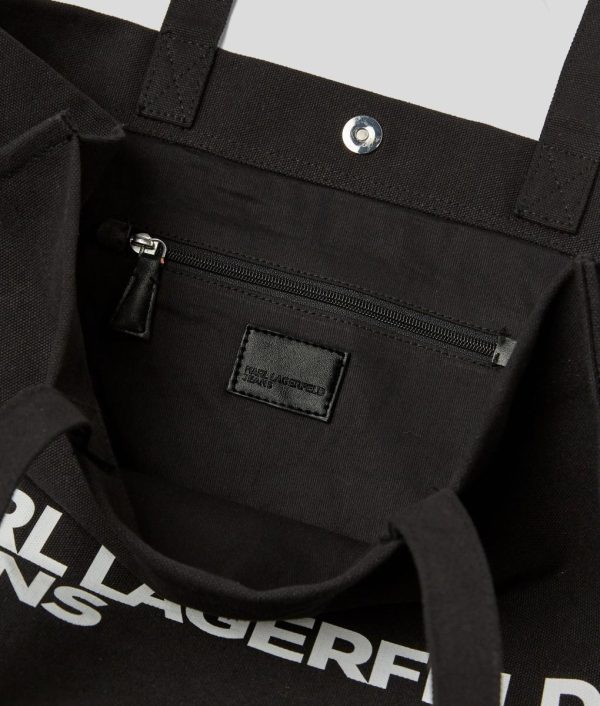 Crafted from a recycled cotton blend, this canvas shopper bag from KARL LAGERFELD JEANS features a magnetic closure, twin handles, and a handy inside pocket for enhanced practicality.