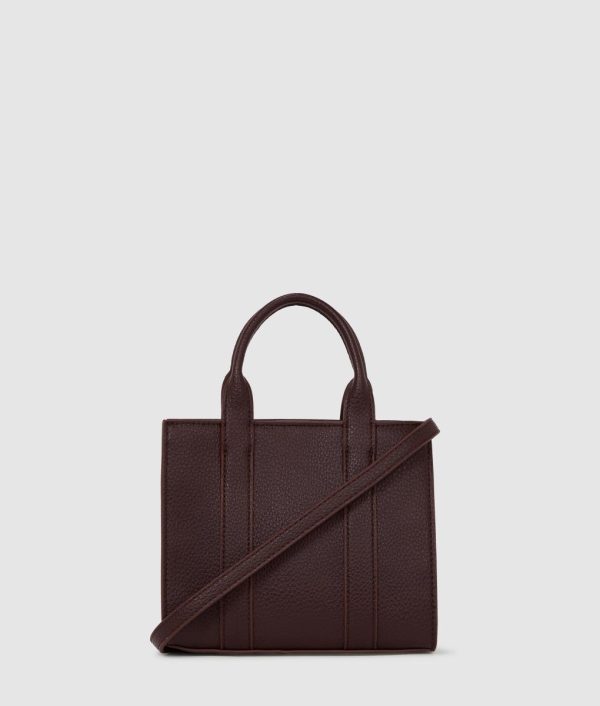 This mini tote bag offers a contemporary square silhouette with a secure metal pin closure. Twin handles and a detachable crossbody strap offer personalized styling, while the Rue St-Guillaume logo adds a touch of sophistication.