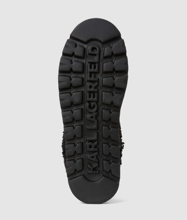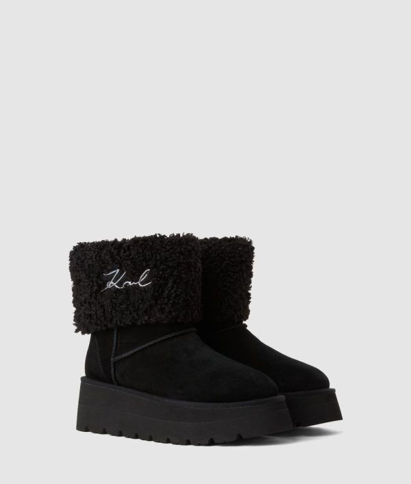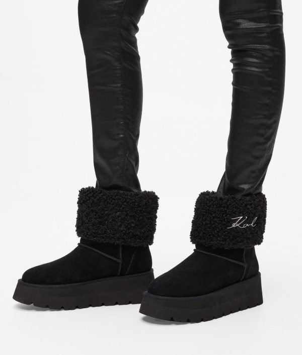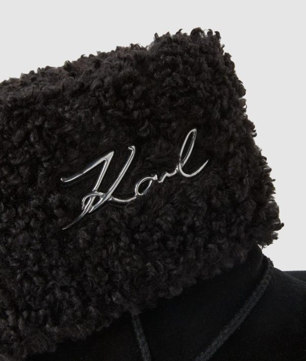 Experience ultimate comfort and sophisticated style with these elevated wedge boots featuring a luxurious mid-calf design. The premium suede construction showcases exquisite whipstitch detailing, while the iconic Karl Signature adds a touch of designer elegance to your look.