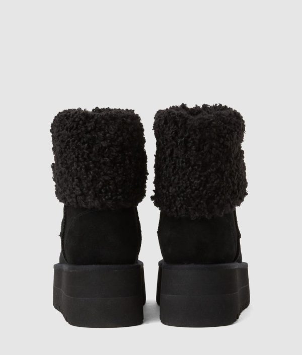 - Plush lining with fold-over detail at the cuff