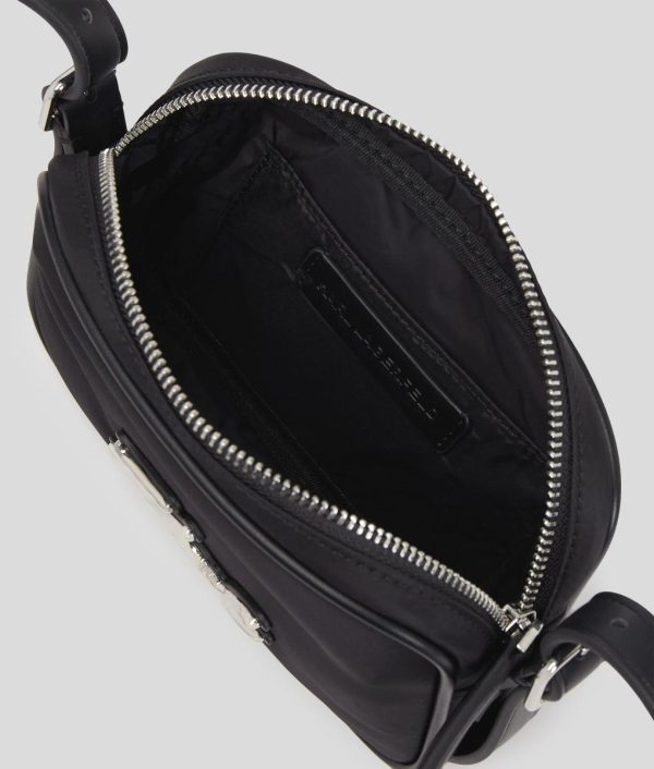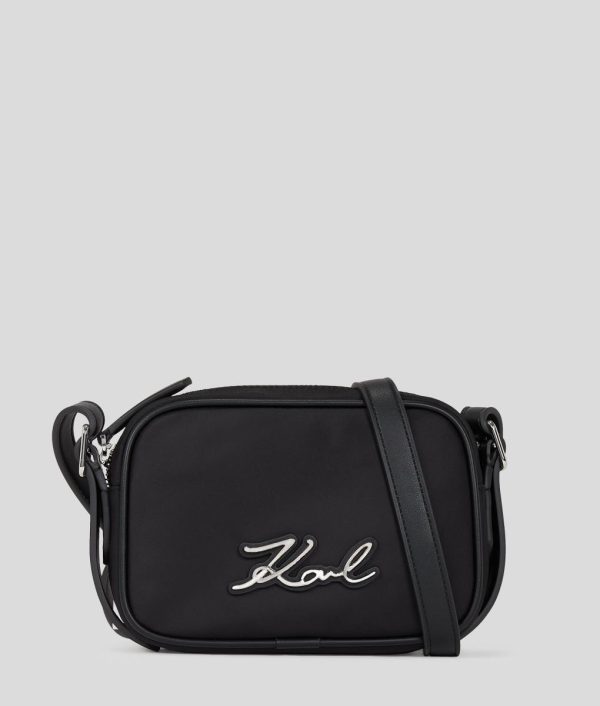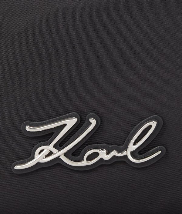 Effortlessly chic, this crossbody pouch combines practicality with elegant style. A secure zip-top closure safeguards essentials, while the strap allows for versatile wear. Finished with delicate Karl Signature hardware, it’s a must-have accessory.
