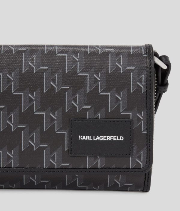 A contemporary companion for those on-the-go days, this crossbody wallet features a secure flap closure with an internal zip, ensuring your essentials stay safe. With multiple card slots and an adjustable strap, complemented by an iconic Karl Monogram design, it combines practicality with style.