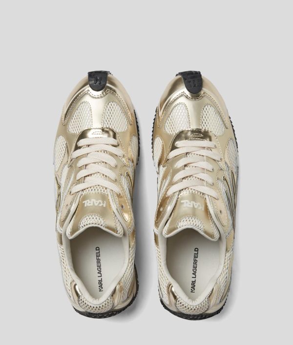 Striking metallic leather enhanced by high-shine mesh detailing define these head-turning sneakers. A contrasting striped sole and KARL Autograph logo add a distinctive finish to any day-to-night outfit.