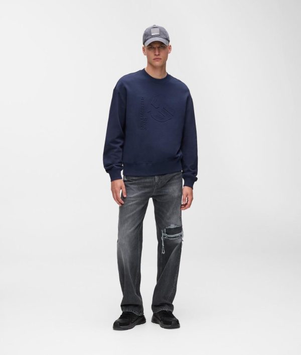A relaxed sweatshirt in organic cotton, featuring a roomy fit and subtle ribbing. Embossed monogram artwork adds a quiet edge to everyday comfort.