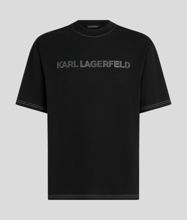 Featuring contrast stitching, this crew neck T-shirt redefines casual style. Bold KARL LAGERFELD logo artwork across the chest completes your statement look.