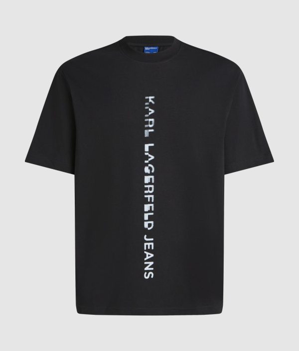 Clean, confident, and made to stand out. This organic cotton T-shirt is topped with a bold vertical logo running down the center front.