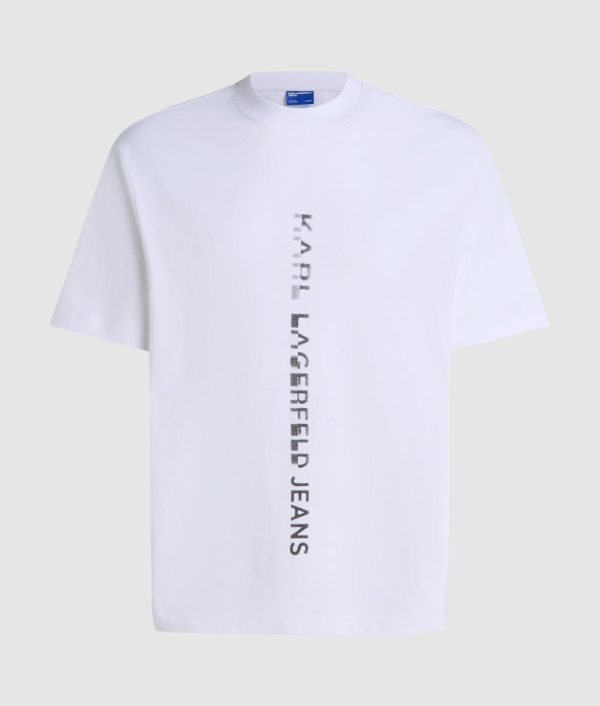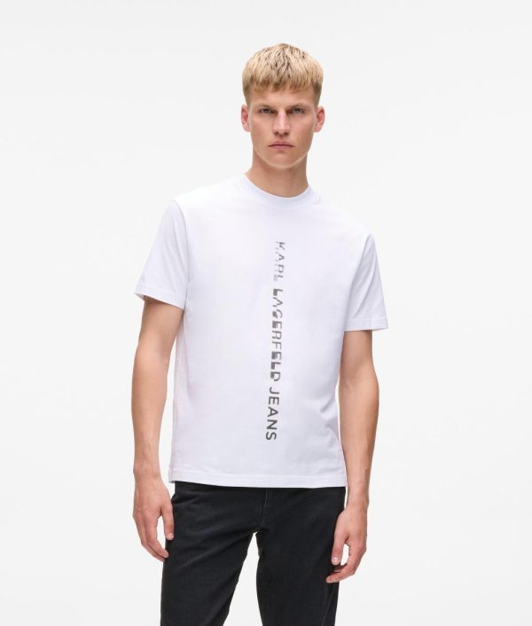 Clean, confident, and made to stand out. This organic cotton T-shirt is topped with a bold vertical logo running down the center front.