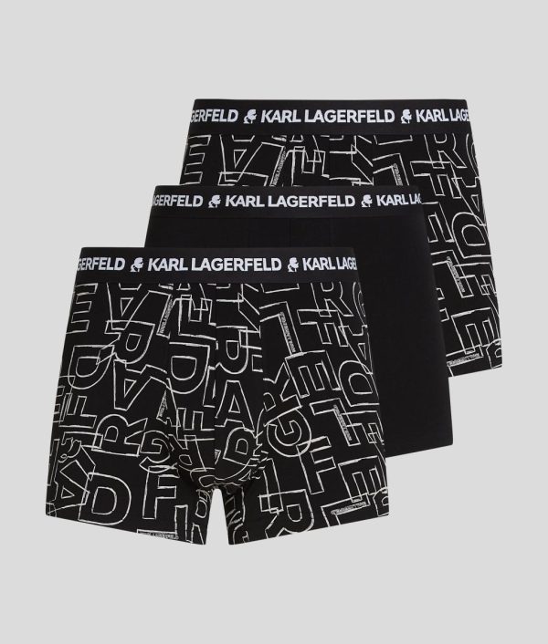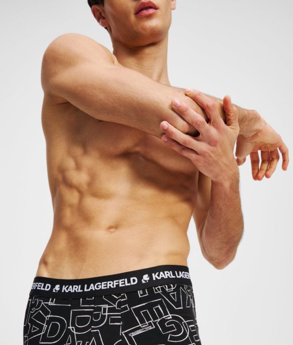 Discover a versatile trio of classic trunks, featuring a mix of solid and all-over print designs. An elasticated waistband ensures a comfortable fit, while the iconic KARL LAGERFELD logo adds a touch of statement style. Perfect for effortless everyday wear.