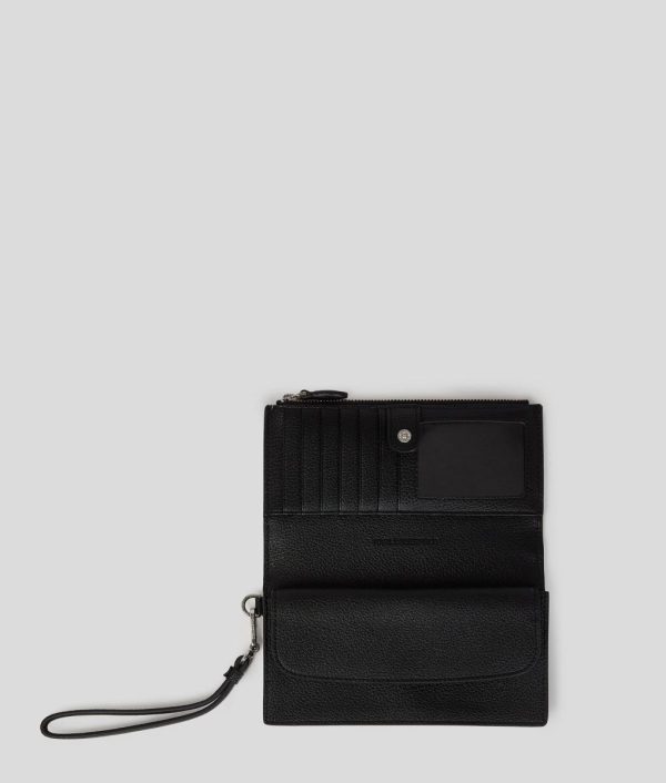 The perfect companion for those on-the-go days, this wallet features a playful Ikon Karl pin and a secure flap closure. With a dedicated phone pocket, zipped compartment for notes and multiple card slots, it effortlessly combines practicality with flair. The detachable wristlet enhances its versatility.