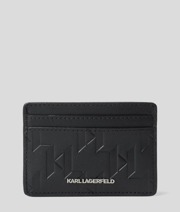 A KARL Monogram embossed leather construction transformsthis timeless cardholder. The slimline style pairs perfectly with the matchingcamera bag for a coordinated accessory look.