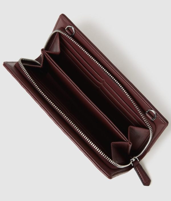 Made from braided technical leather, this crossbody wallet features a detachable rock-chic chain strap. Wear yours as a bag or slip inside your favorite tote.