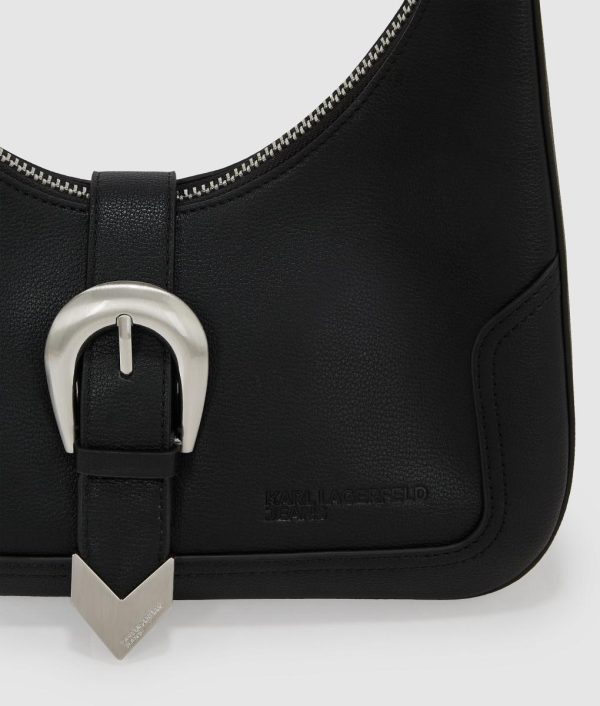 This stylish shoulder bag features a standout Western-inspired buckle, crafted from premium textured technical leather. The adjustable strap offers customizable comfort, while the subtle KARL LAGERFELD JEANS logo adds sophisticated branding.