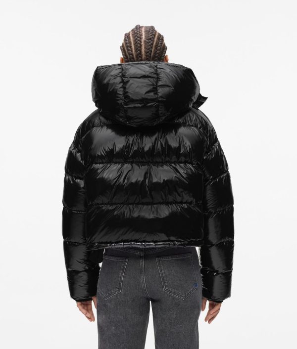 Elevate your cold-weather style with this sleek high-gloss puffer jacket featuring a contemporary quilted design. The cozy adjustable hood and rib-knit cuffs with thumbhole details provide exceptional comfort and protection against chilly conditions.