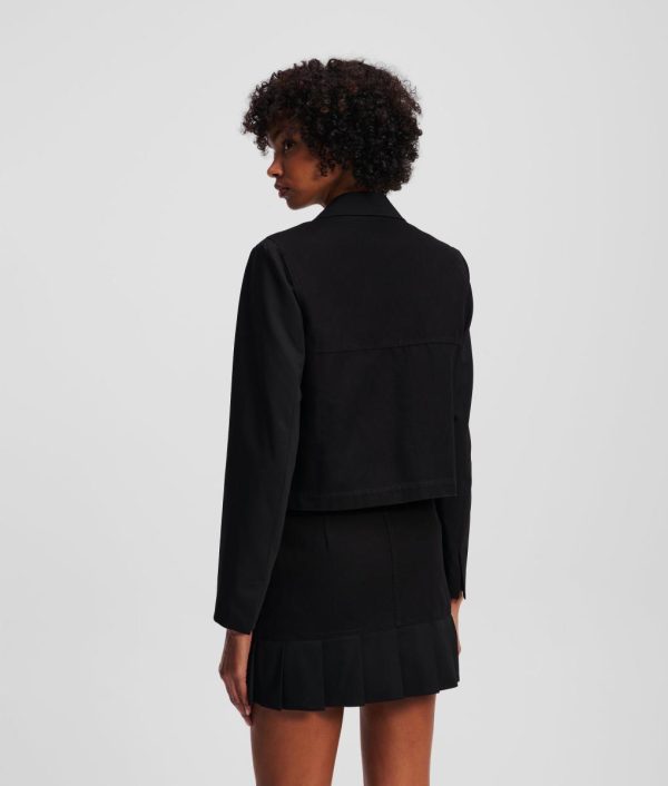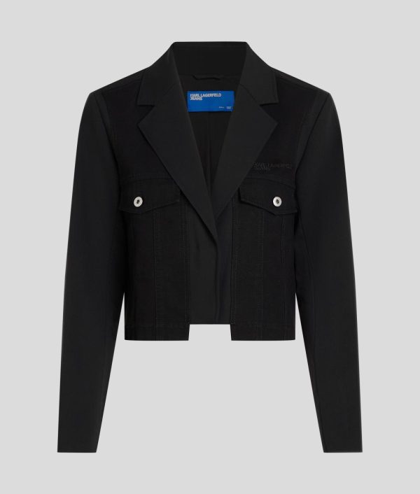 Discover the perfect fusion of sophisticated tailoring and modern functionality with this premium utility blazer. Featuring practical utility patch pockets with signature branded shank buttons, this piece seamlessly blends elevated style with everyday versatility. The subtle KARL LAGERFELD JEANS embroidery adds a distinctive designer touch that sets it apart.