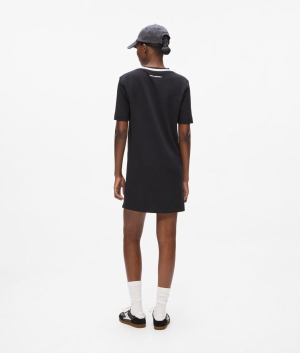 Experience ultimate comfort in this incredibly soft T-shirt dress that’s perfect for everyday wear. The distinctive Ikon Karl artwork patch adds a signature designer touch to this versatile year-round staple.