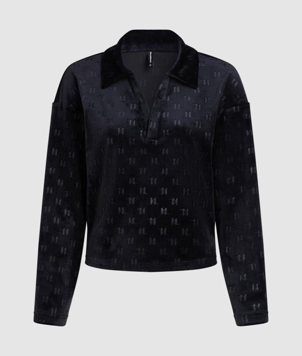 Karl Lagerfeld Women’s Monogram Lounge Polo Shirt – Black Velour