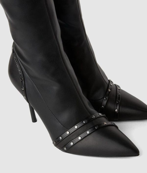 Elevate your style with these sophisticated over-the-knee boots featuring a sharp pointed toe design, a confident stiletto heel, and bold stud accents. Perfect for both dresses and tailored outfits, these boots deliver instant polish and commanding presence.