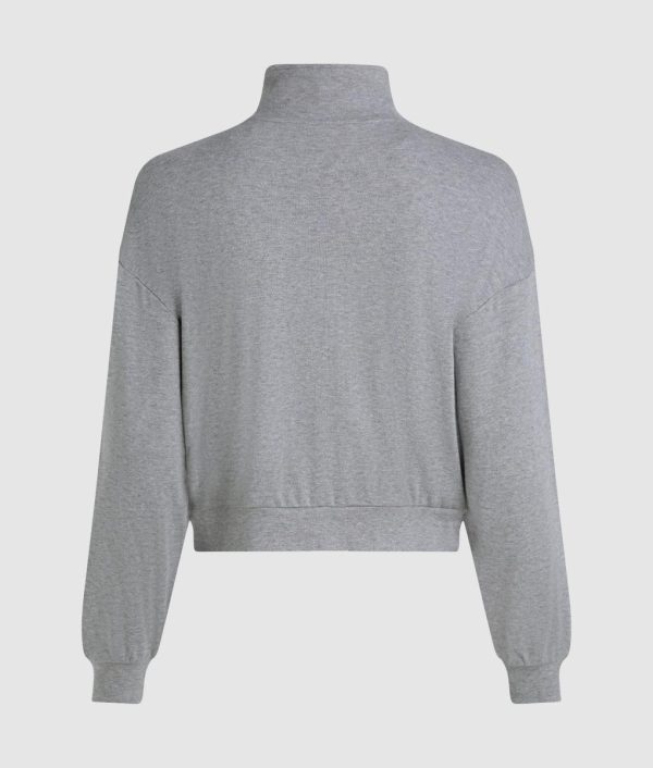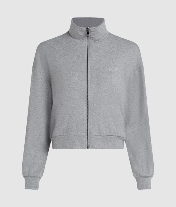 Karl Lagerfeld Women’s Signature Zip-Up Lounge Sweatshirt – Medium Grey Melange